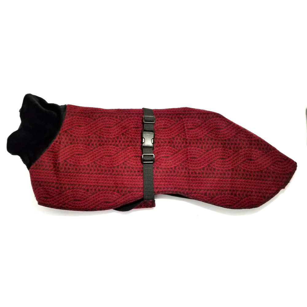 Two sizes are available - Medium and Large. The medium fits most whippets up to 30 pounds. The larger coat is for the males, or a girl with a longer body. It fits whippets up to 40 pounds.