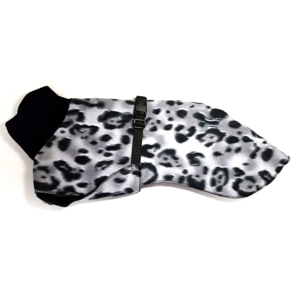 Two sizes are available - Medium and Large. The medium fits most whippets up to 30 pounds. The larger coat is for the males, or a girl with a longer body. It fits whippets up to 40 pounds.